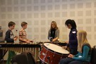 Innerhalb kürzester Zeit fanden sich die Schülerinnen und Schüler mit Aristides Strongylis in die Welt der Komposition ein und arbeiteten mit selbst ausgedachten Themen und Melodien in zwei verschiedenen Gruppen, in denen die von den VIFFlern selbst erfundenen Themen des "Unerwarteten Besuchs" und "Bilder einer Weltreise" musikalisch umgesetzt wurden. Es war bemerkenswert, wie schnell sich alle jungen Musikerinnen und Musiker in ihrer Gruppe an den verschiedenen Schlaginstrumenten, die in der Landesmusikakademie zur Verfügung gestellt wurden, zurechtfanden und sich ausprobieren konnten. Somit entstanden Klangcollagen, freie Improvisation, Theatermusiken und Melodien mit Ohrwurmcharakter. Davon konnten sich die Eltern bei der Abschlusspräsentation überzeugen und der langanhaltende Applaus zeigte, dass die VIFFler einmal mehr mit ihrem Können ihre Eltern beeindruckt haben.