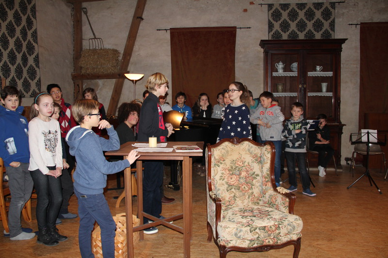 Die Ergebnisse der Workshops wurden den Eltern am Sonntag in der Kulturscheune des Haasenhofs präsentiert. In der Kurzgeschichte waren alle VIFFler engagiert beteiligt und wurden mit viel Applaus belohnt. Die drei Lieder aus dem Film "Die Kinder des Monsieur Mathieu" waren für viele VIFFler am Wochenende schon zu regelrechten Ohrwürmern geworden und sie konnten die Melodien sehr überzeugend darbieten.